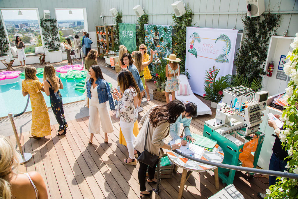 On Wednesday, April 3rd, Kopari hosted an experiential event at Skybar, Mondrian Hotel in West Hollywood to celebrate the launch of their newest product, Sundaze Sunscreen. Three vignettes were created to represent their major product lines: Body Care, Face Care and Sundaze. Each vignette included beachy, tropical themed decor and provided an opportunity for guests to test out the products. In addition, attendees had a chance to get a skincare analysis by a NUR Skincare specialist, customized Turkish towel embroidery and themed food & drinks.